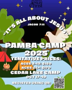 This year’s camp theme will be: “It’s all about Jesus” centered around Jacob 7:11.